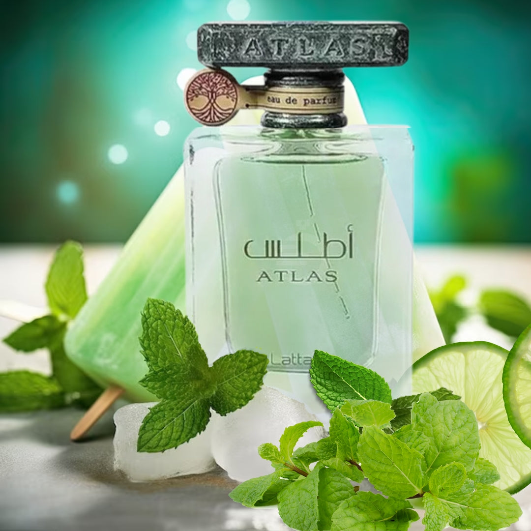 Lattafa Atlas se caracteriza por un acorde acuático refrescante y tonificante, capturando la esencia del mar. Las notas altas están dominadas por notas acuáticas y marinas, que evocan una sensación de brisa marina y la frescura salada del aire marino. Estas notas crean una impresión inicial limpia, nítida y que recuerda a una atmósfera costera.